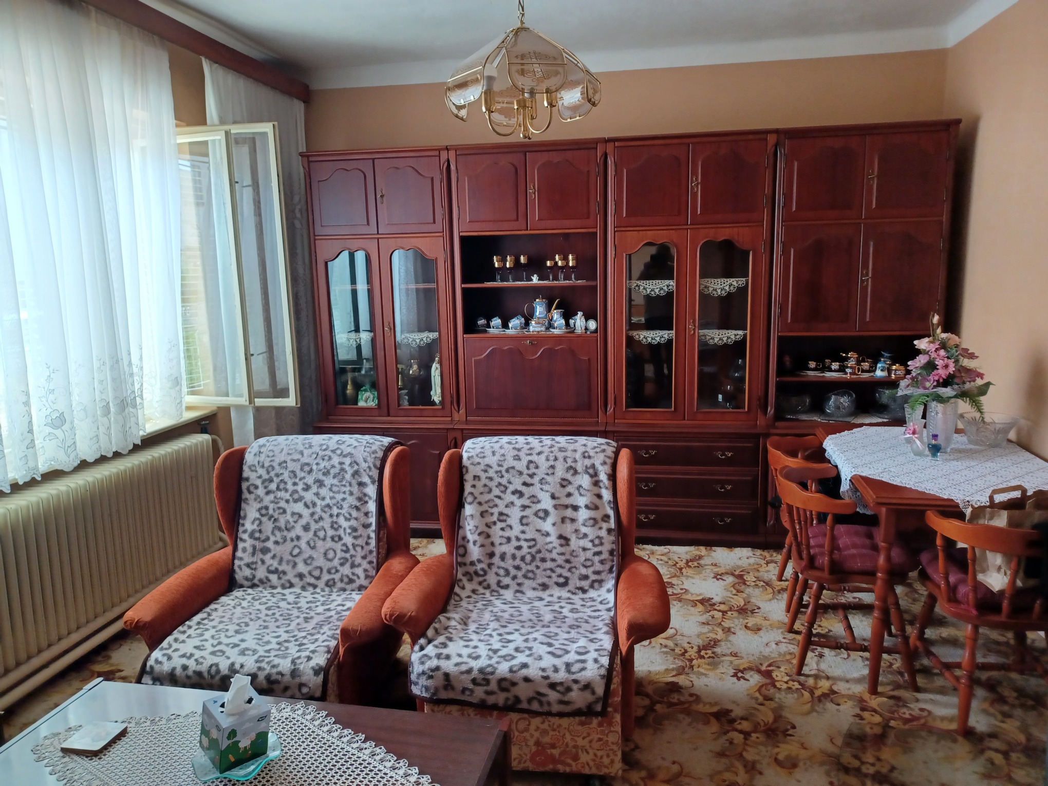 Samotný dom ponúka príjemnú a vzdušnú dispozíciu – dve priestranné izby, veľkorysú kuchyňu, kúpeľňu a praktickú špajzu. Na pozemku sa nachádza aj samostatne stojaca garáž, prístavba a skleník, ktoré rozširujú možnosti využitia nehnuteľnosti.
